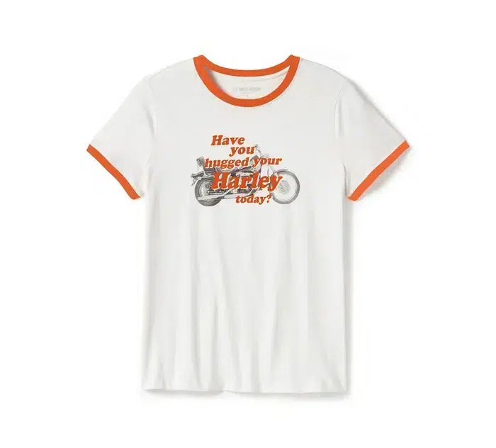 Luce tu pasión por la carretera con un toque vintage. La Hug a Harley® Ringer Tee combina nostalgia ochentera con el estilo auténtico de Harley-Davidson. Confeccionada en punto de algodón transpirable, esta camiseta ofrece un corte estándar cómodo y un diseño fiel al clásico cuello redondo.