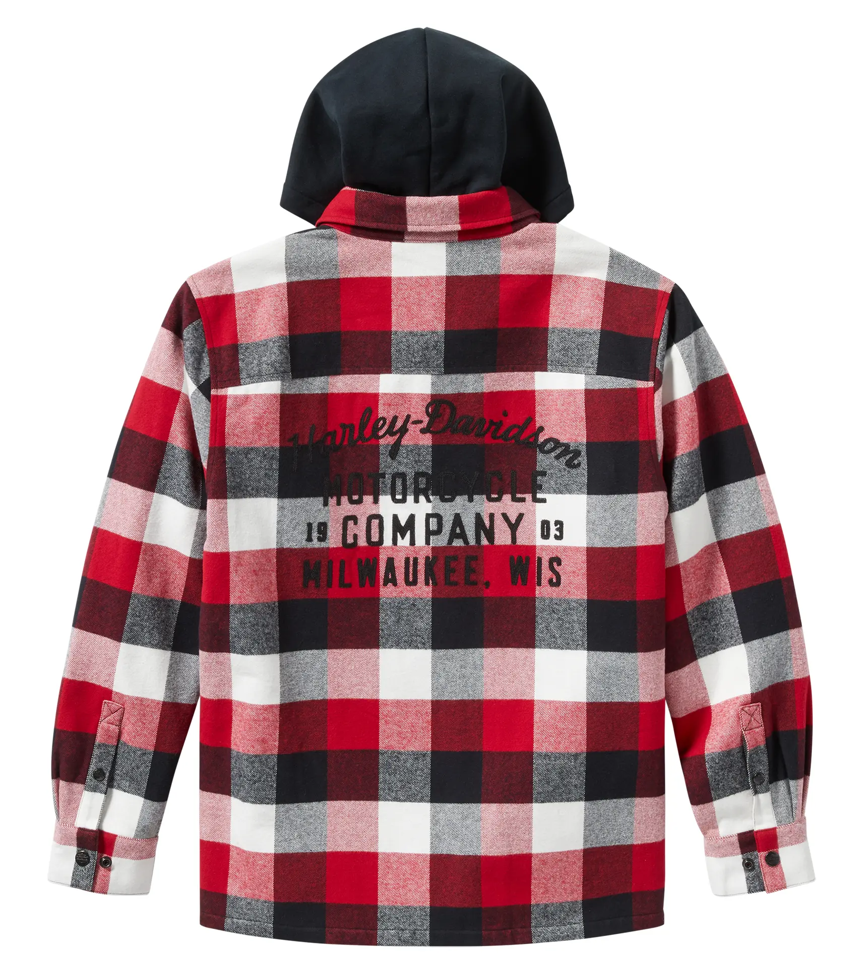Chaqueta estilo camisa con capucha a cuadros en rojo y negro
